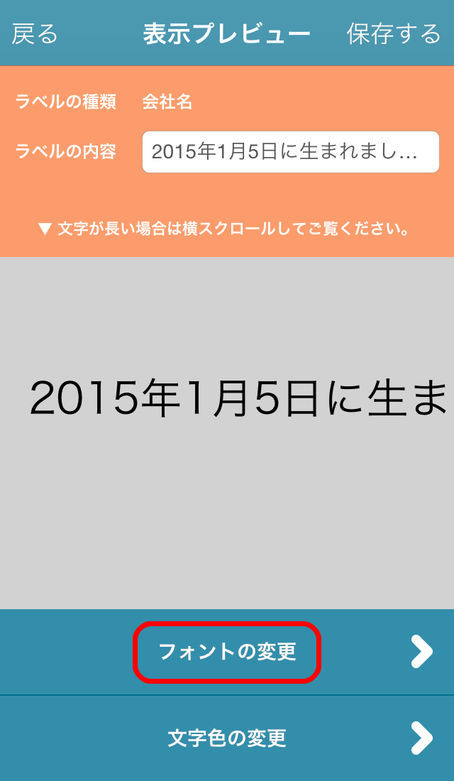 (3) 選択中の文字項目を、「+」ボタン長押しで拡大し、「▼」ボタン長押しで下に移動します。
